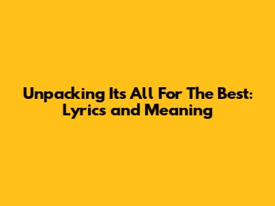 Unpacking 'It's All For The Best': Lyrics And Meaning