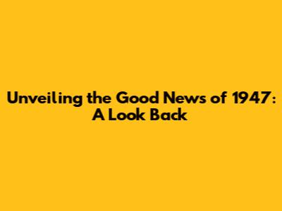Unveiling The Good News Of 1947: A Look Back