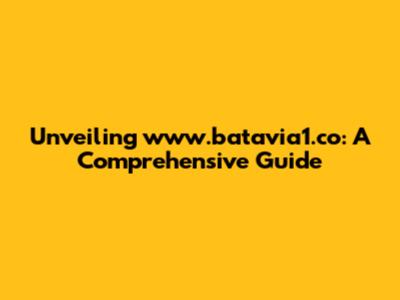 Unveiling Www.batavia1.co: A Comprehensive Guide